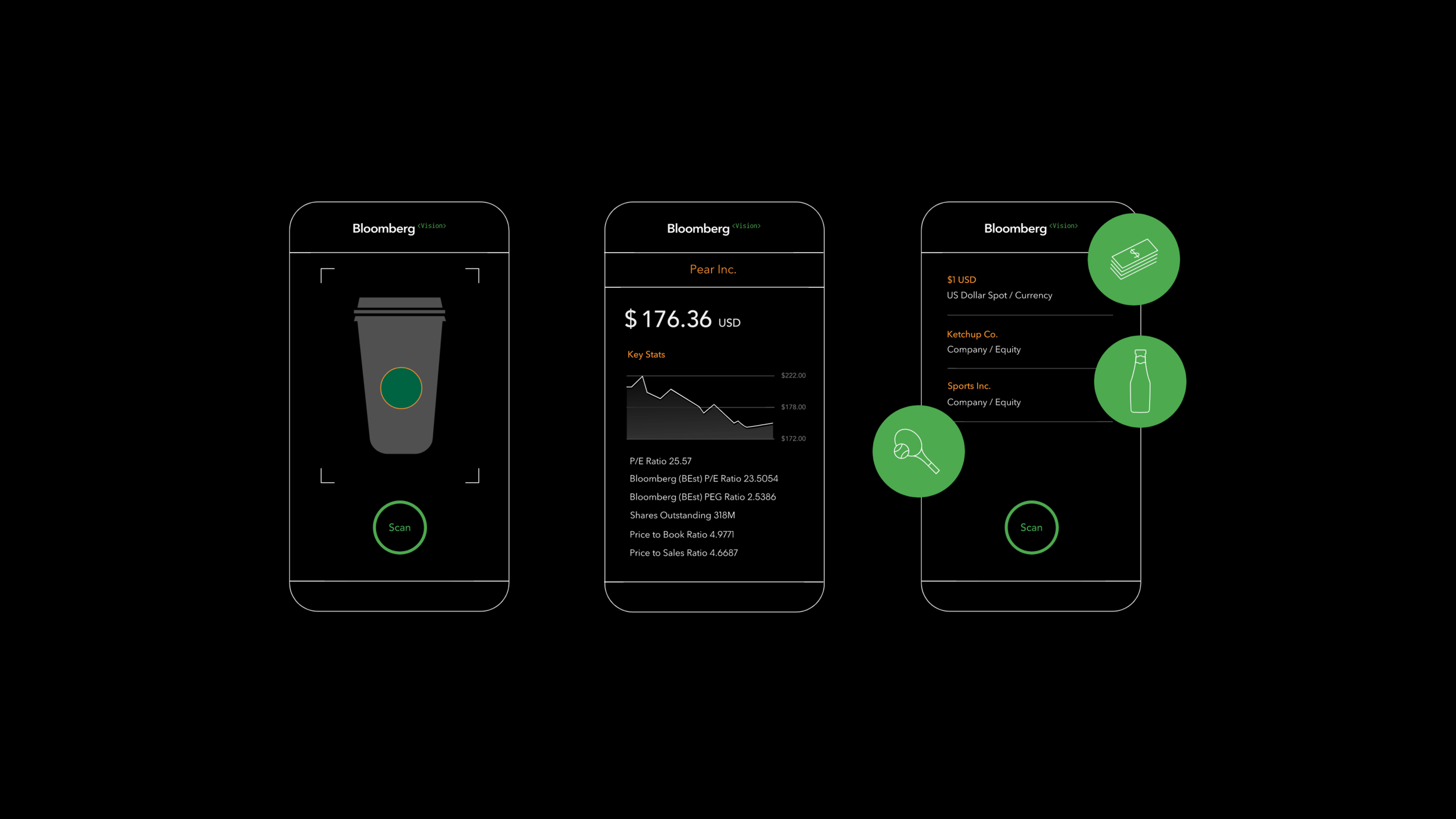 Anyone on any mobile device can use the app. It uses Computer Vision and web technologies to recognize elements in the environment. Then, it matches them to a reference library that returns snippets of the vast amount of data available on the Bloomberg Terminal. By adding to the reference library, the system is constantly being taught to identify new objects and logos.